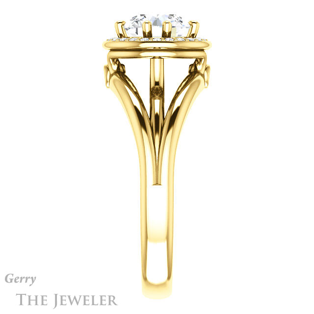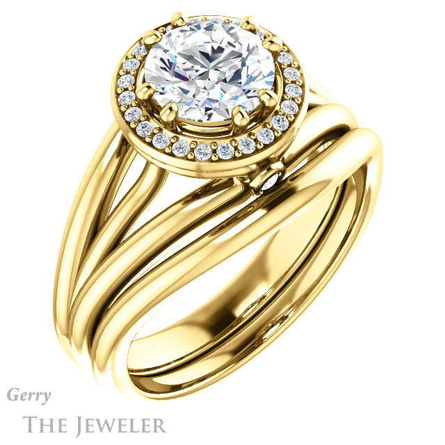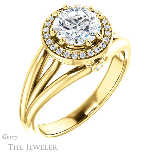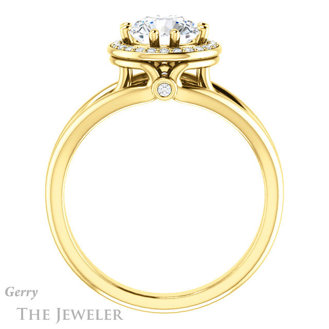 - This design can be set with your choice of certified lab grown diamond or moissanite center gem.Â