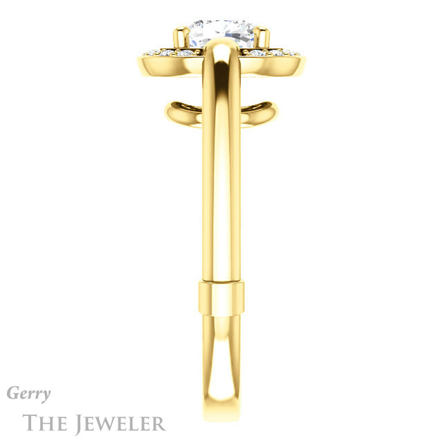 - This design can be set with your choice of certified lab grown diamond or moissanite center gem.Â