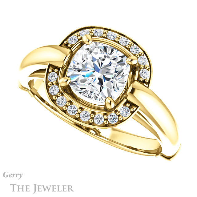Cushion Cut Forever One Moissanite Engagement Ring #GTJ1239-cushion-fo-y