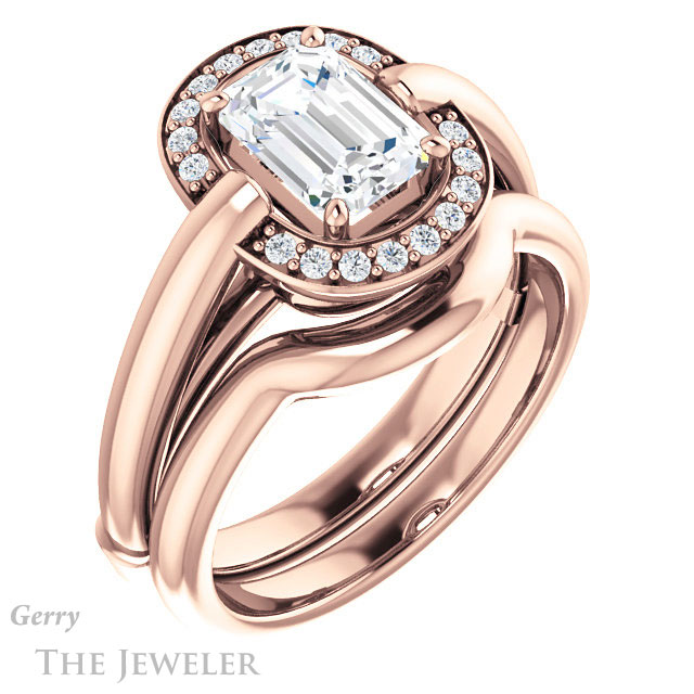 Emerald Cut Forever One Moissanite Engagement Ring #GTJ1239-emerald-fb-r