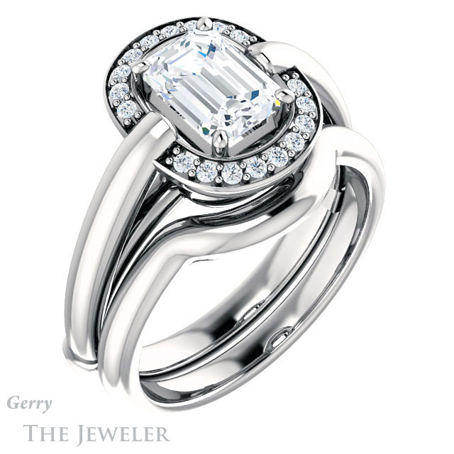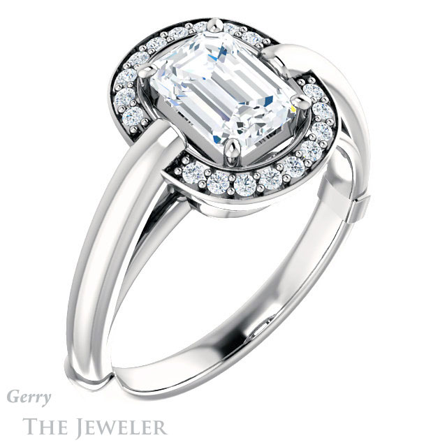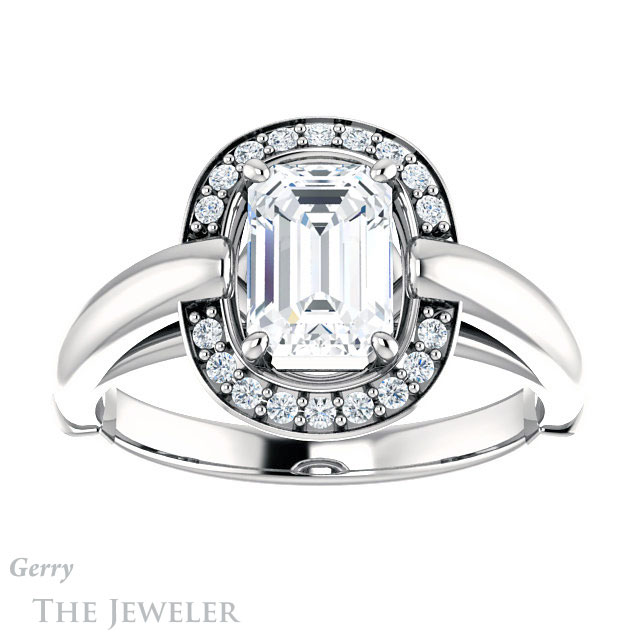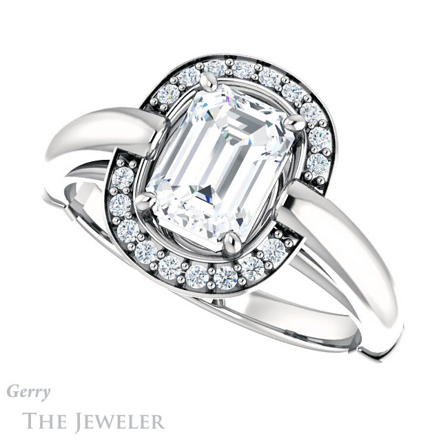 Emerald Cut Forever One Moissanite Engagement Ring #GTJ1239-emerald-fb-w