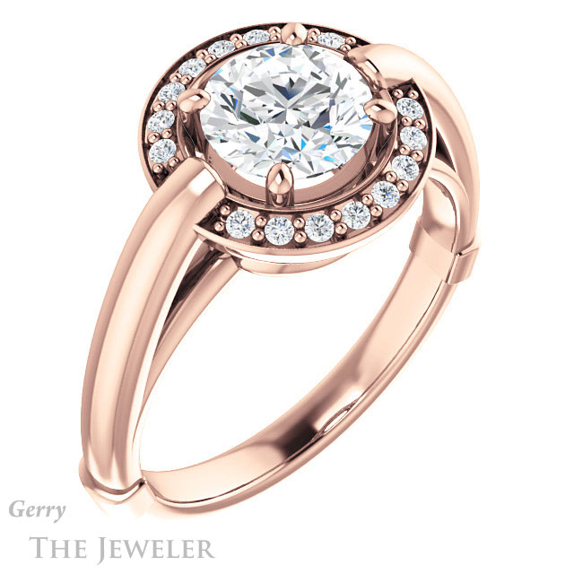 - This design can be set with your choice of certified lab grown diamond or moissanite center gem.Â