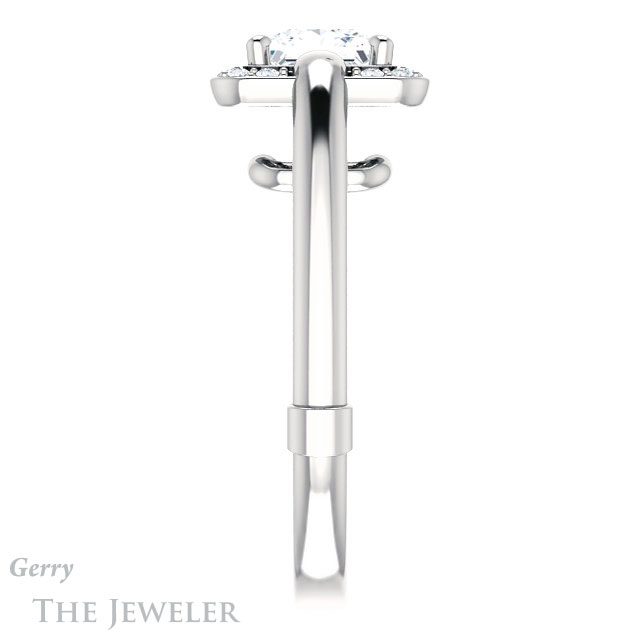 - This design can be set with your choice of certified lab grown diamond or moissanite center gem.Â