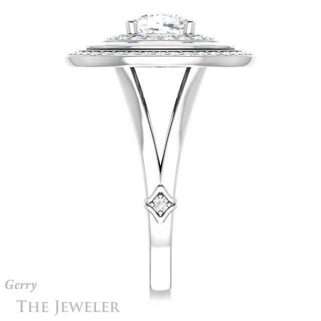 - This design can be set with your choice of certified lab grown diamond or moissanite center gem.Â