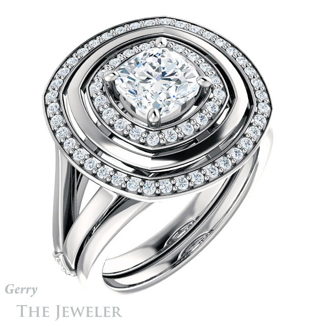 Cushion Cut Forever One Moissanite Engagement Ring #GTJ1241-cushion-fo-w