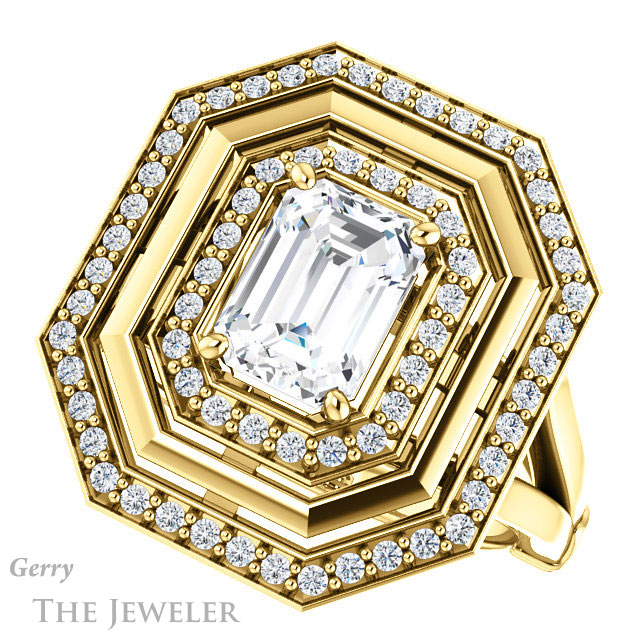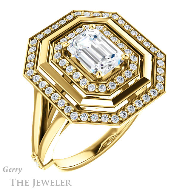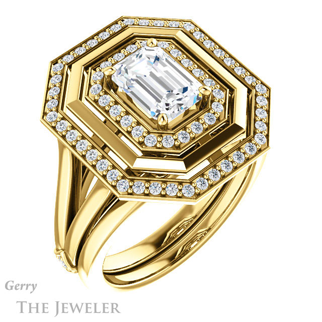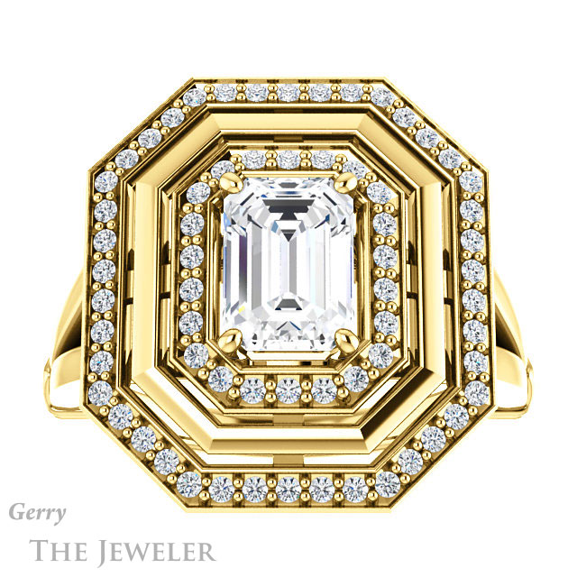 Emerald Cut Forever One Moissanite Engagement Ring #GTJ1241-emerald-fb-y