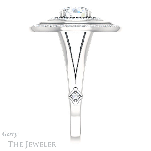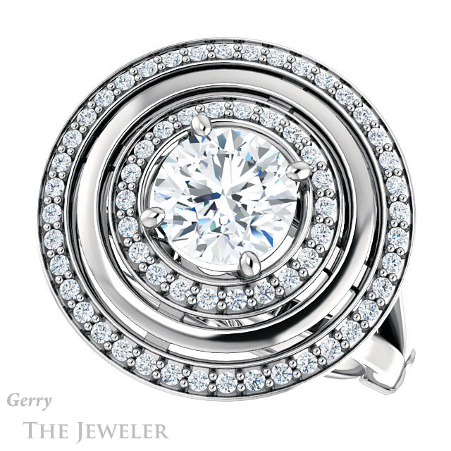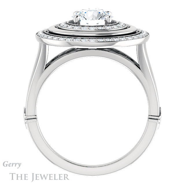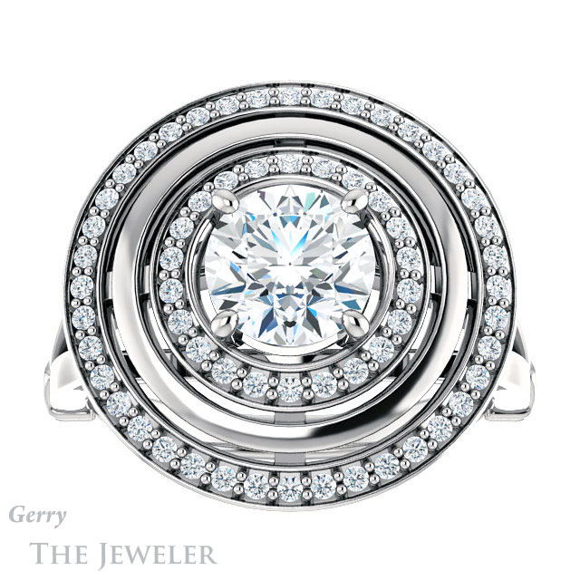 - This design can be set with your choice of certified lab grown diamond or moissanite center gem.Â