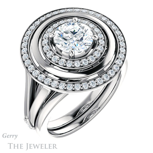 Round Cut Forever One Moissanite Engagement Ring #GTJ1241-round-fo-w