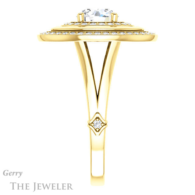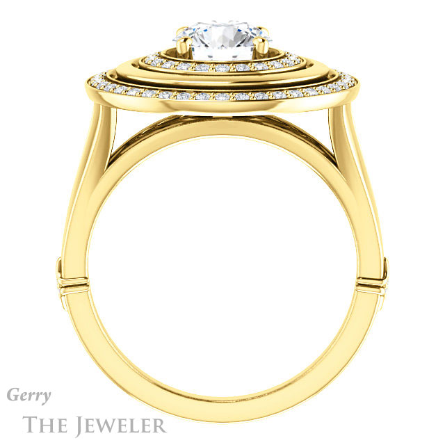 - This design can be set with your choice of certified lab grown diamond or moissanite center gem.Â