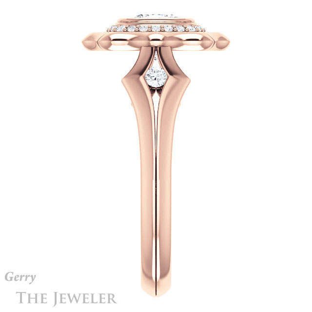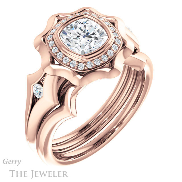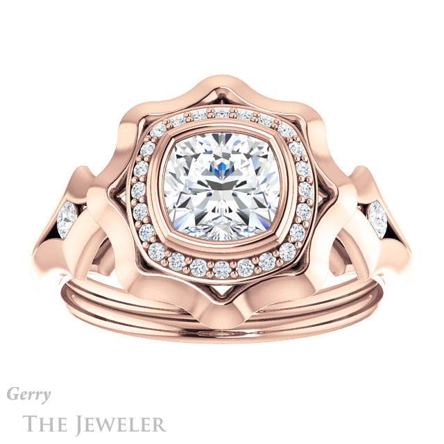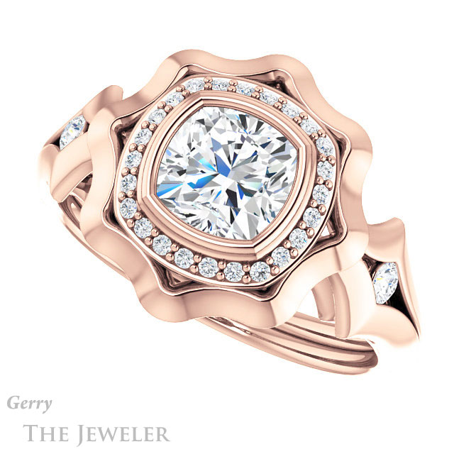 - This design can be set with your choice of certified lab grown diamond or moissanite center gem.Â