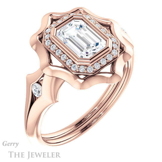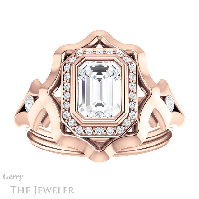 Emerald Cut Forever One Moissanite Engagement Ring #GTJ1246-emerald-fb-r