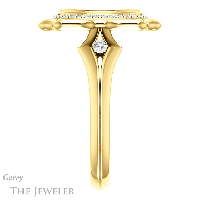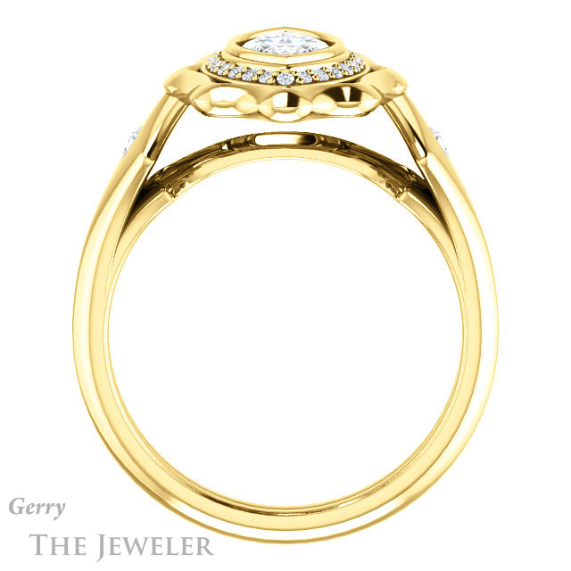 - This design can be set with your choice of certified lab grown diamond or moissanite center gem.Â