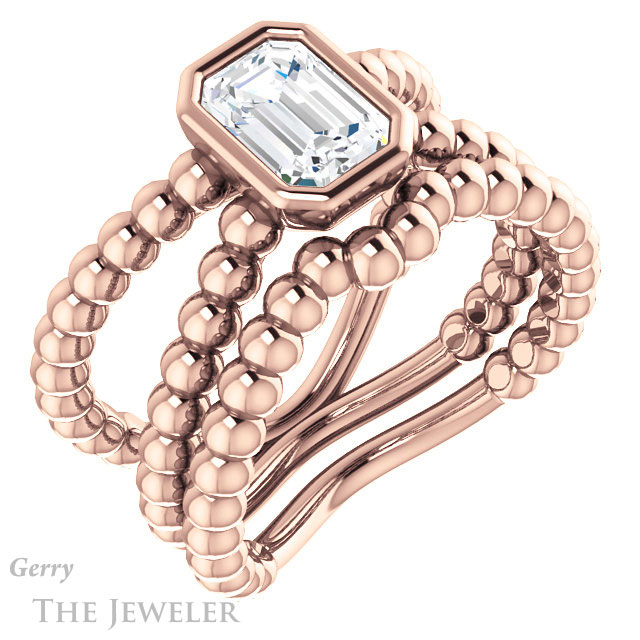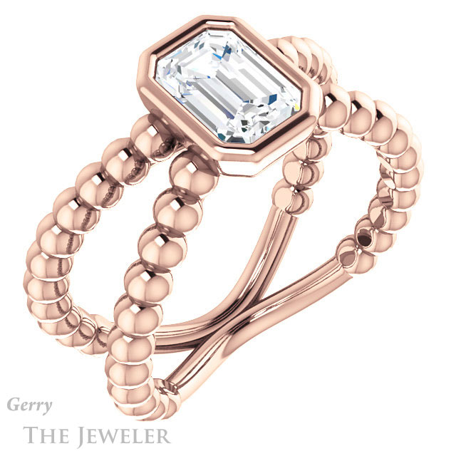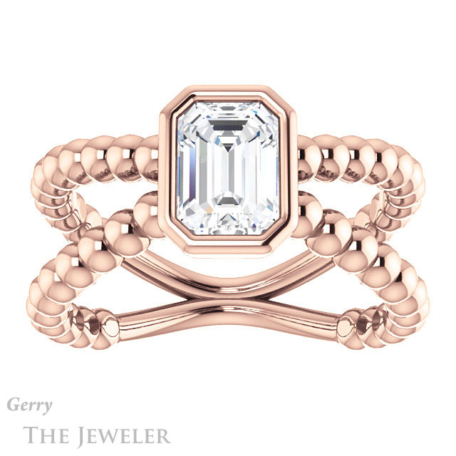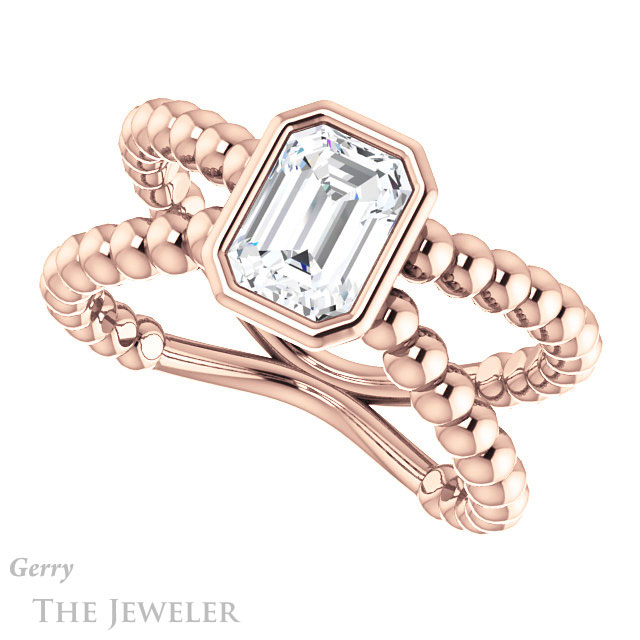 - This design can be set with your choice of certified lab grown diamond or moissanite center gem.Â