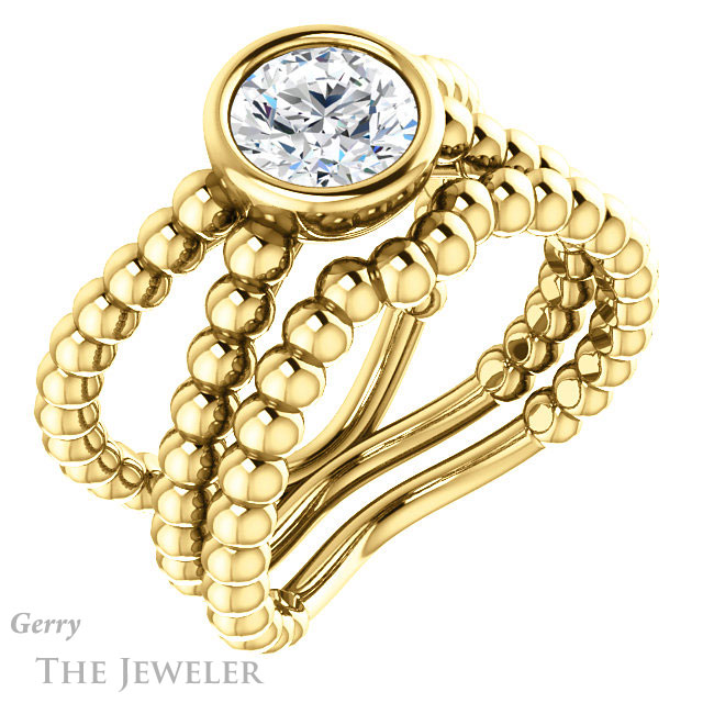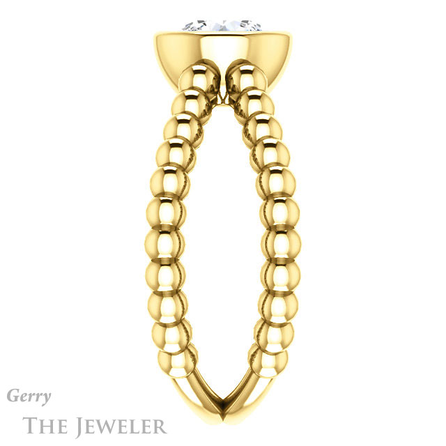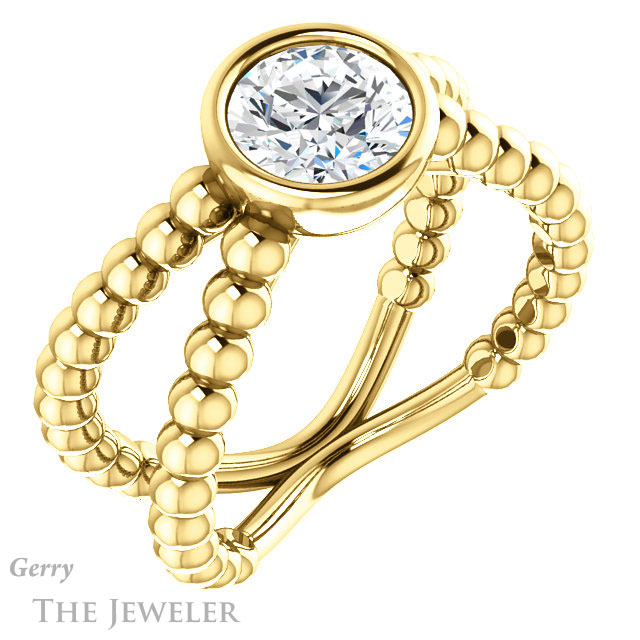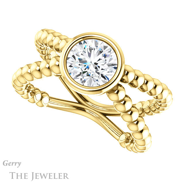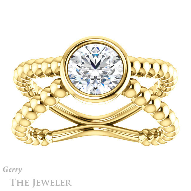 - This design can be set with your choice of certified lab grown diamond or moissanite center gem.Â