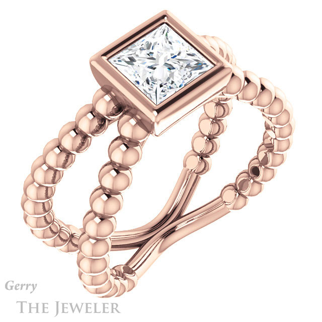 - This design can be set with your choice of certified lab grown diamond or moissanite center gem.Â