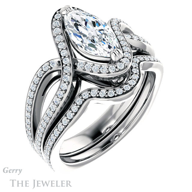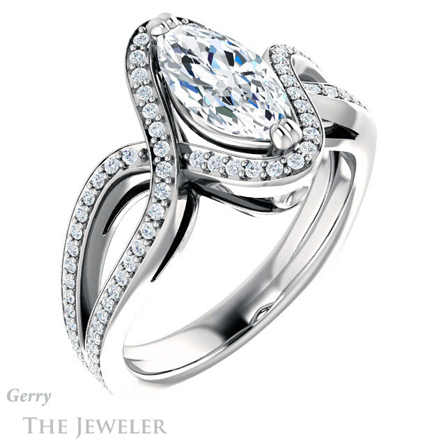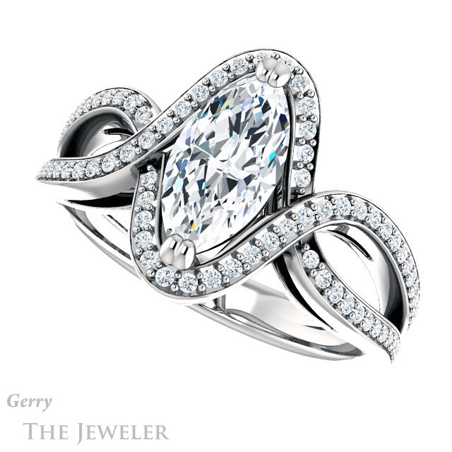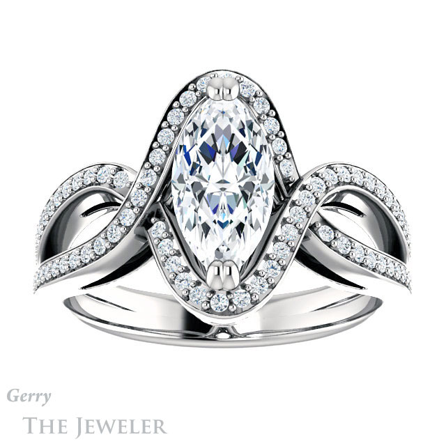 Marquise Cut Forever One Moissanite Engagement Ring #GTJ1257-marquise-fb-w