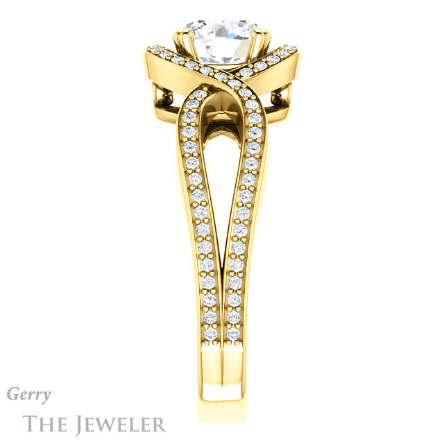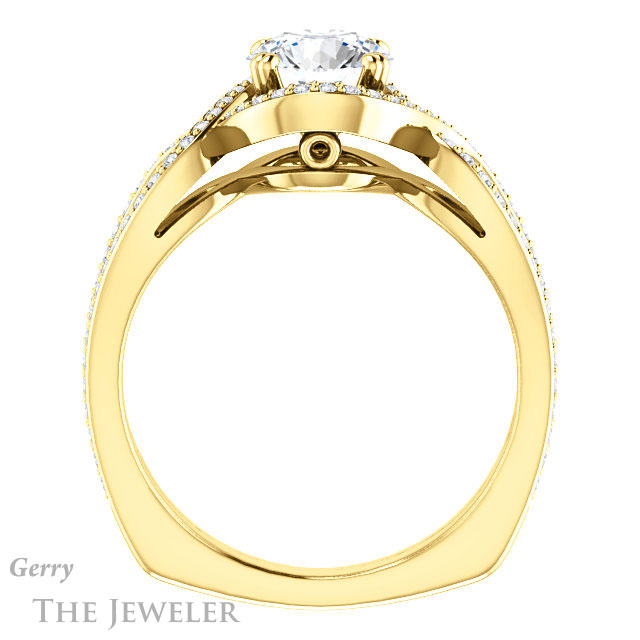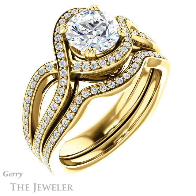 - This design can be set with your choice of certified lab grown diamond or moissanite center gem.Â
