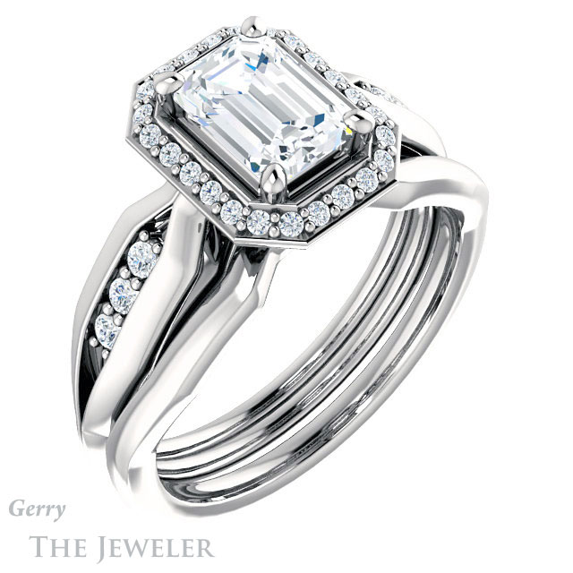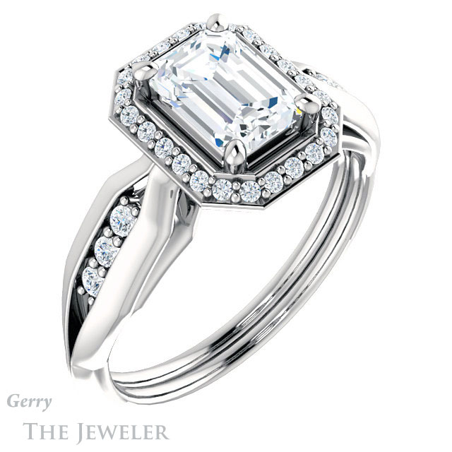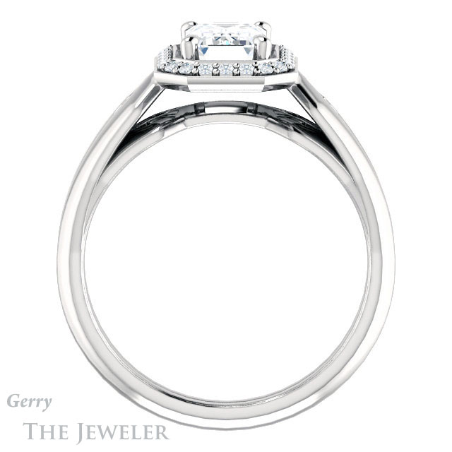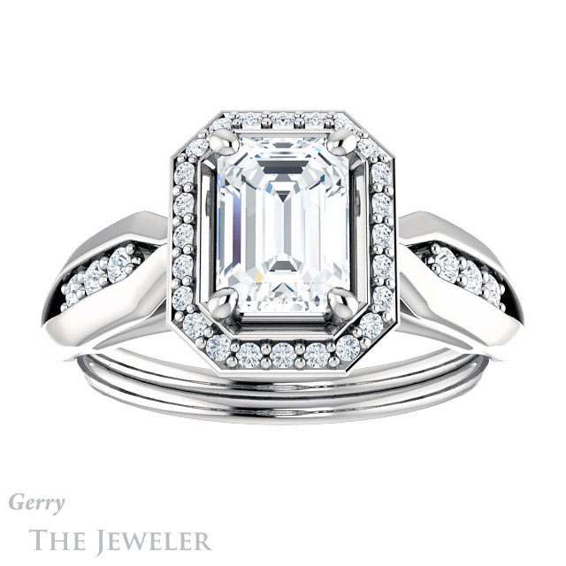 Emerald Cut Forever One Moissanite Engagement Ring #GTJ1259-emerald-fb-w