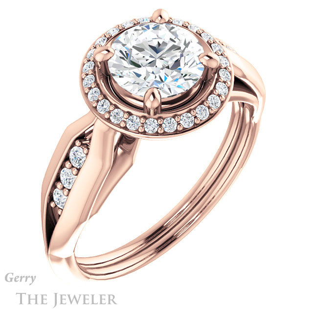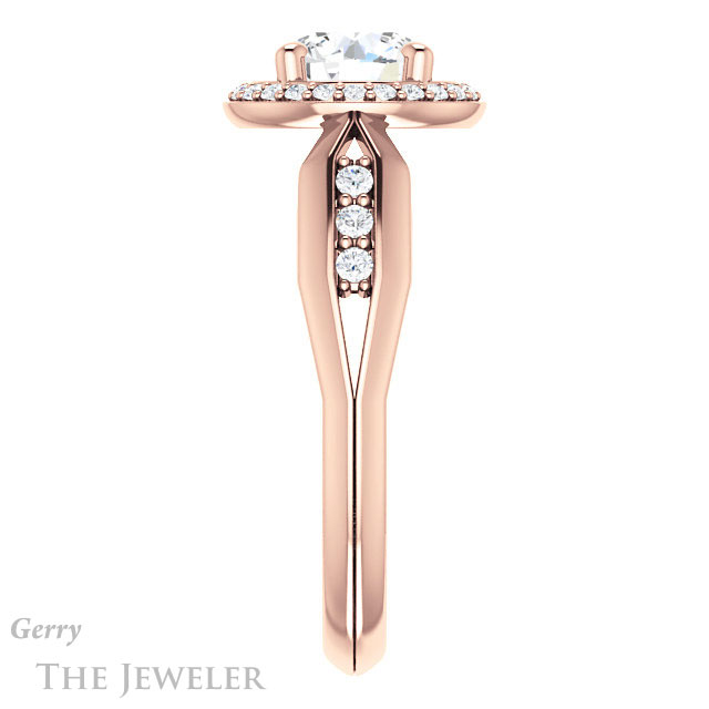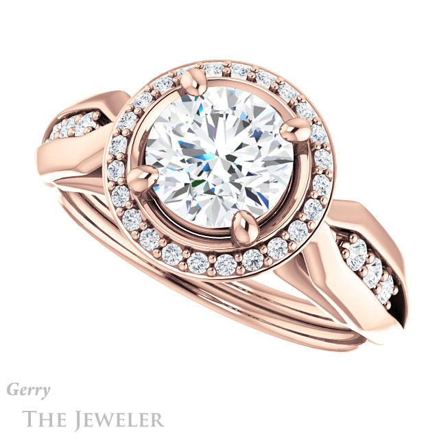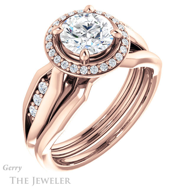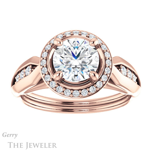 - This design can be set with your choice of certified lab grown diamond or moissanite center gem.Â