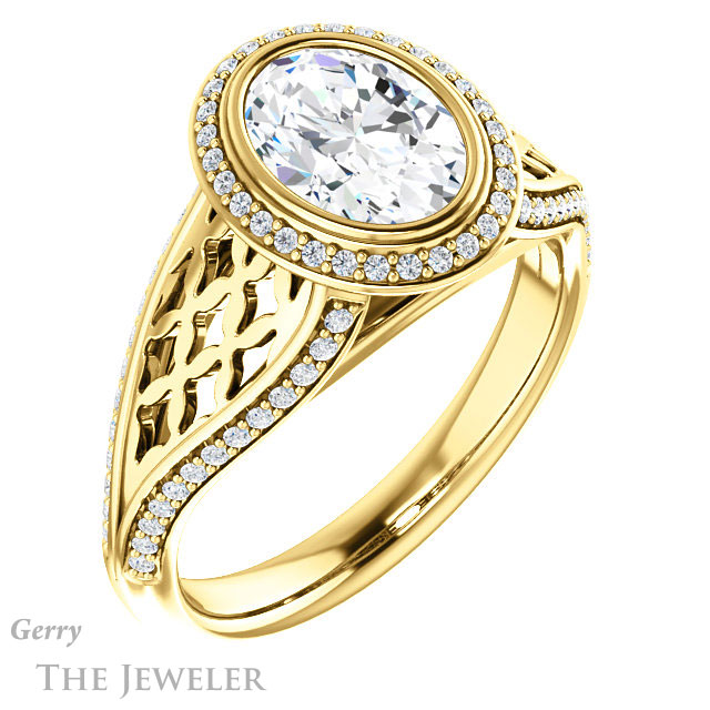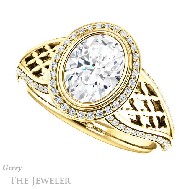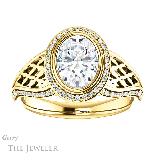 Oval Shaped Forever One Moissanite Engagement Ring #GTJ1264-oval-fo-y