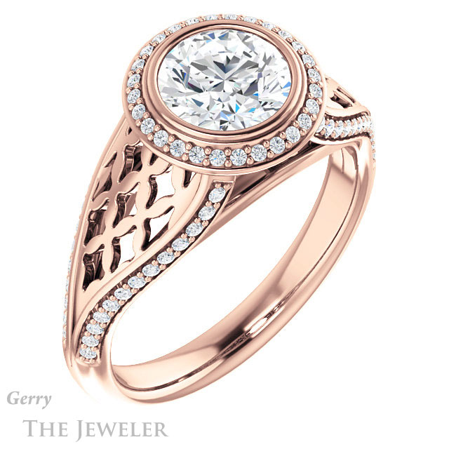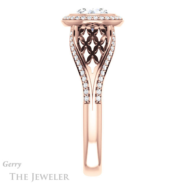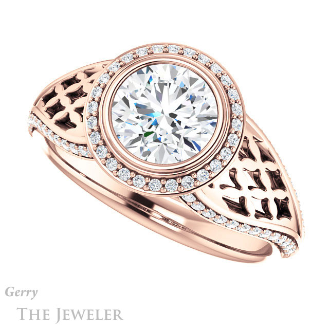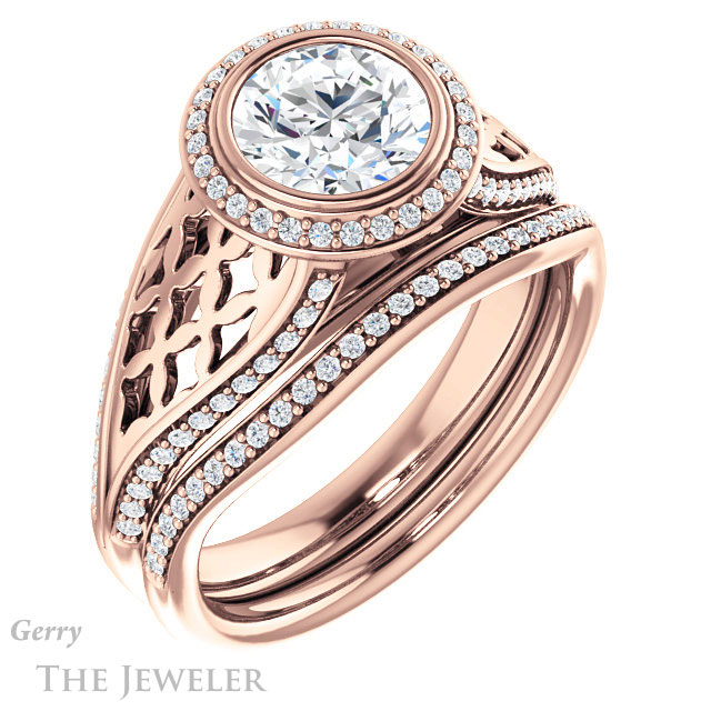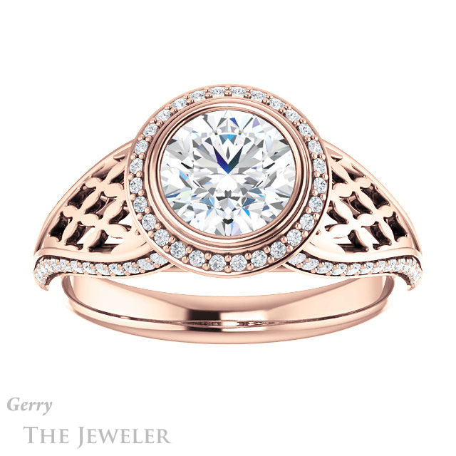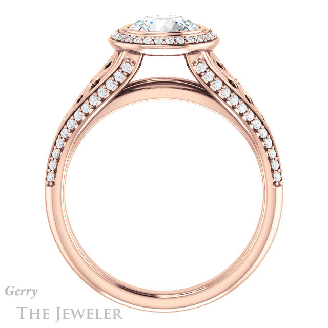 - This design can be set with your choice of certified lab grown diamond or moissanite center gem.Â