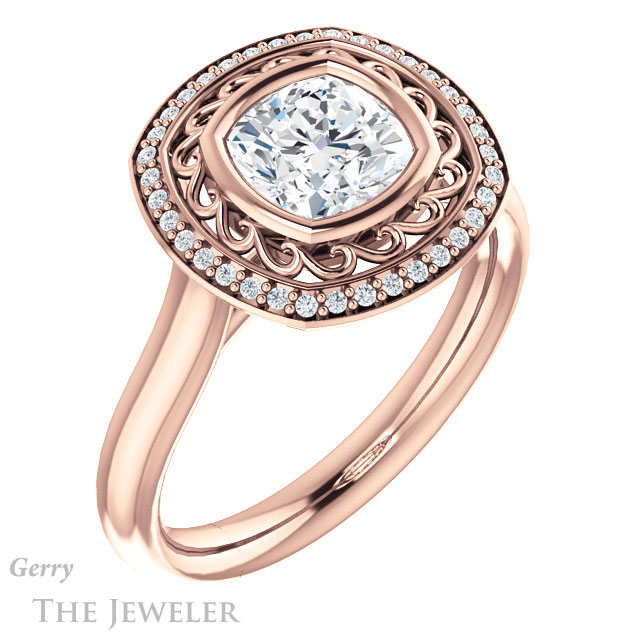 Cushion Cut Forever One Moissanite Engagement Ring #GTJ1271-cushion-fo-r