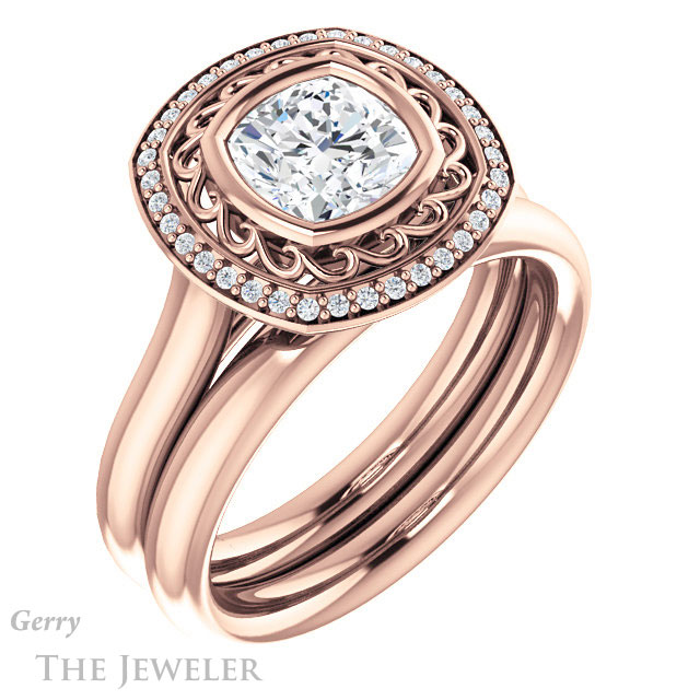- This design can be set with your choice of certified lab grown diamond or moissanite center gem.Â