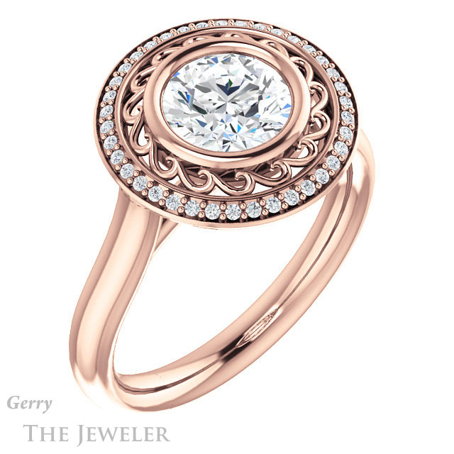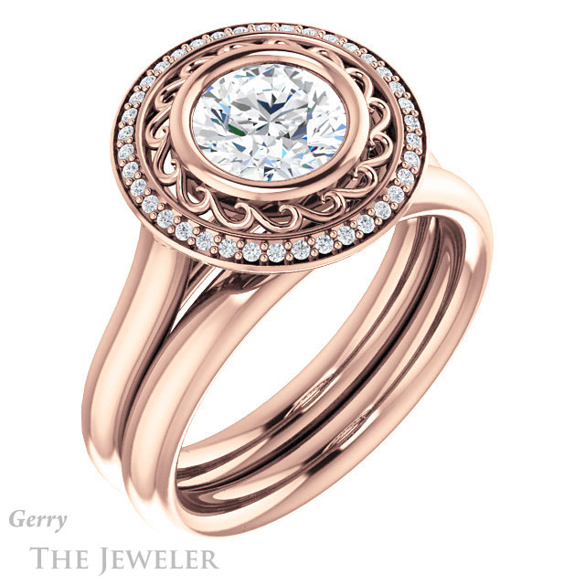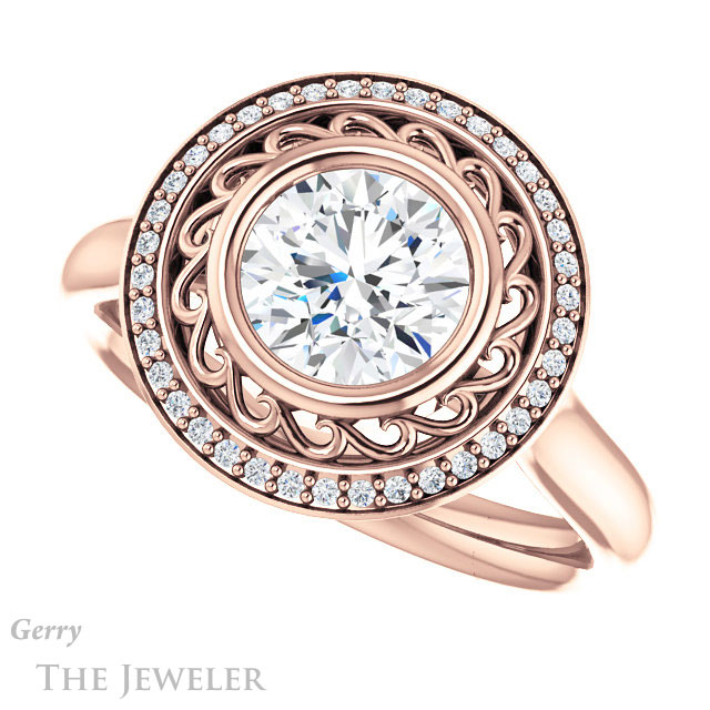 - This design can be set with your choice of certified lab grown diamond or moissanite center gem.Â