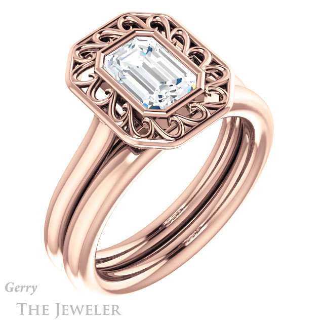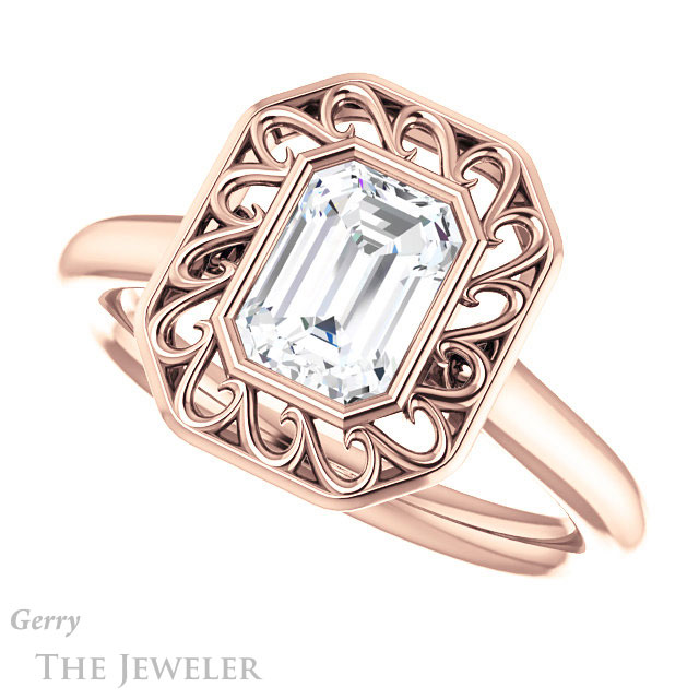 Emerald Cut Forever One Moissanite Engagement Ring #GTJ1275-emerald-fb-r
