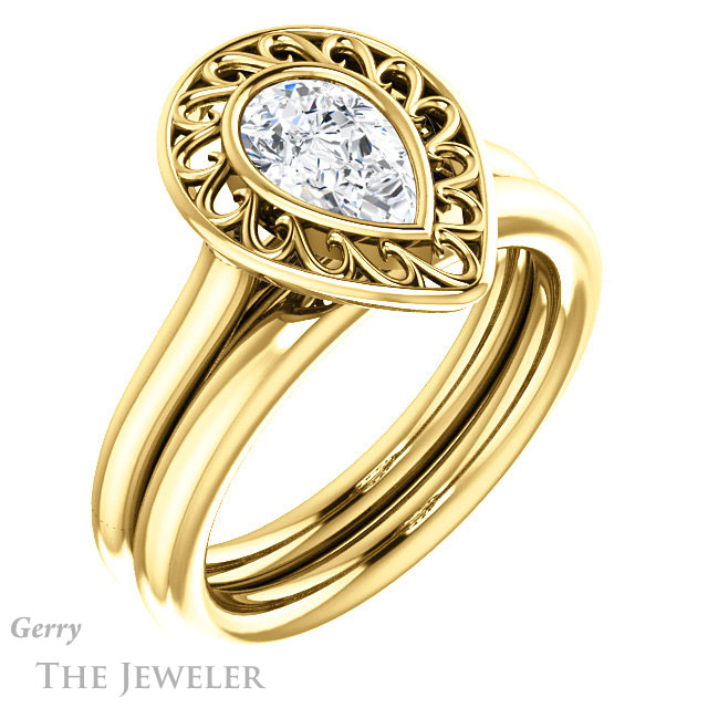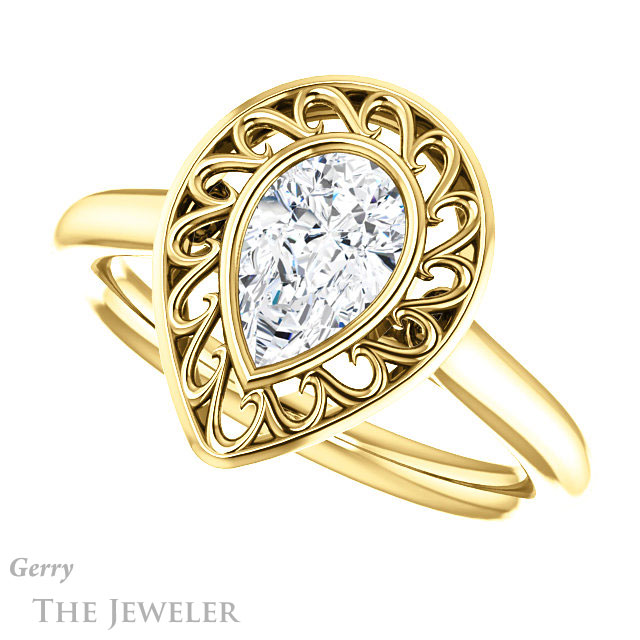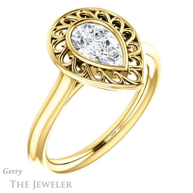 Pear Shaped Forever One Moissanite Engagement Ring #GTJ1275-pear-fb-y