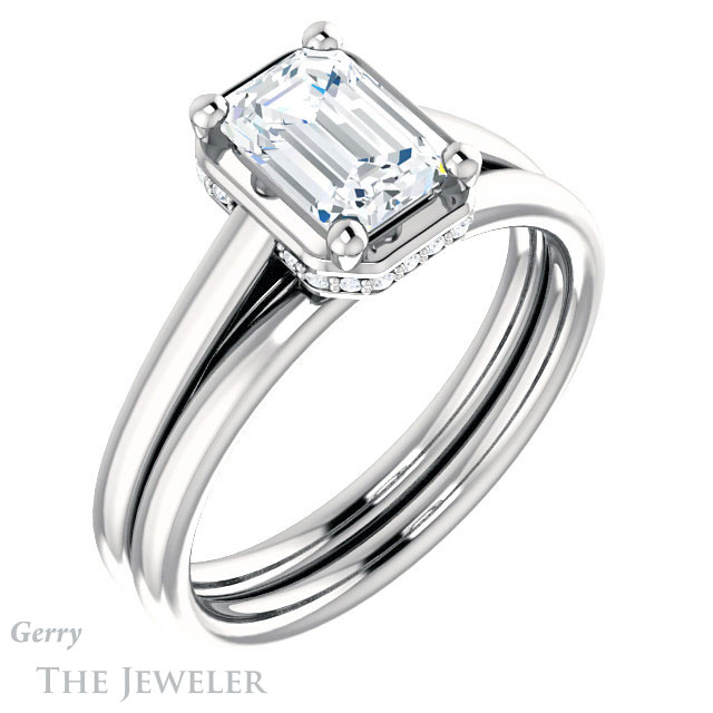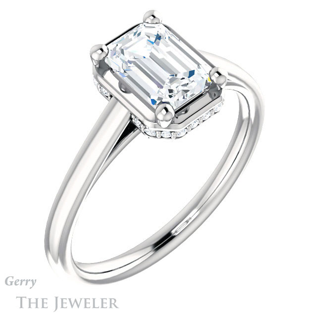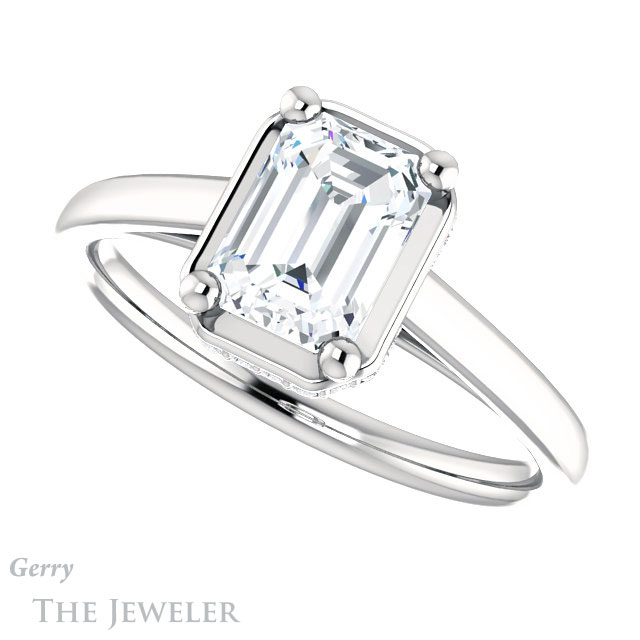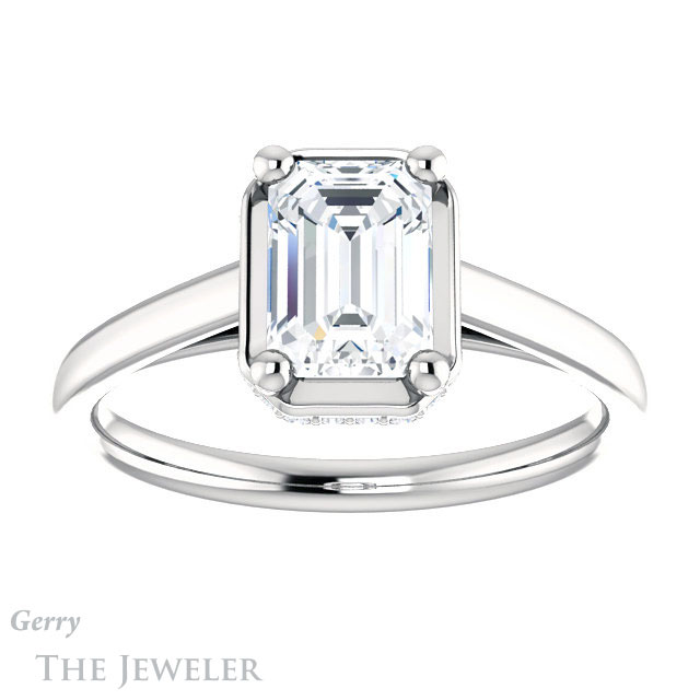 Emerald Cut Forever One Moissanite Engagement Ring #GTJ1283-emerald-fb-w