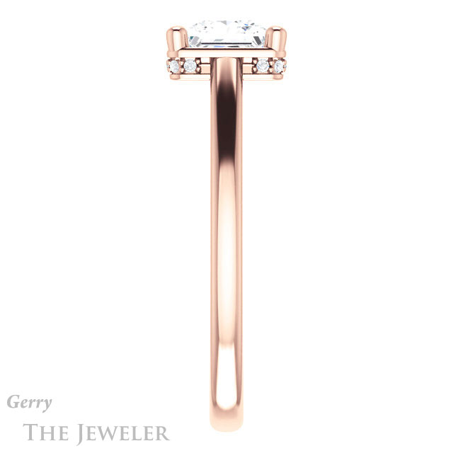 - This design can be set with your choice of certified lab grown diamond or moissanite center gem.Â