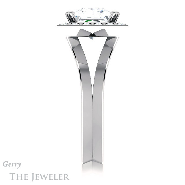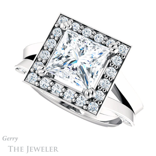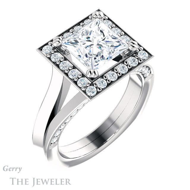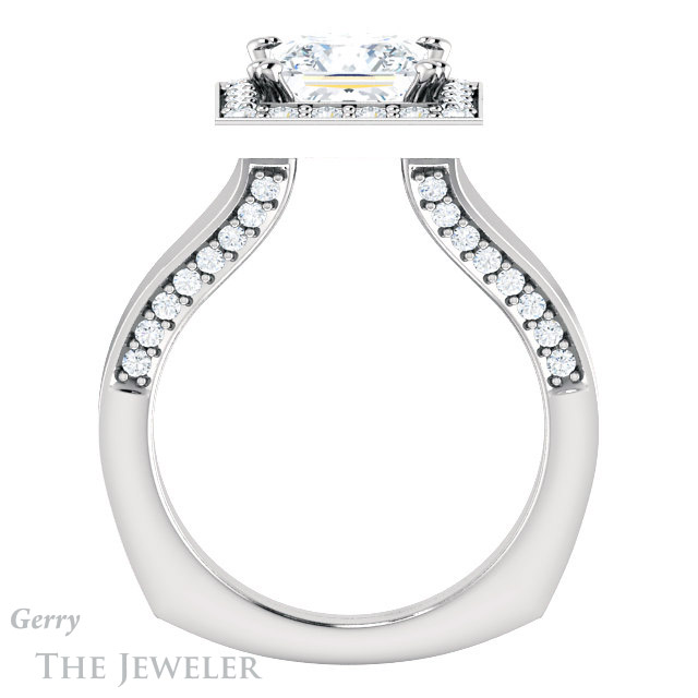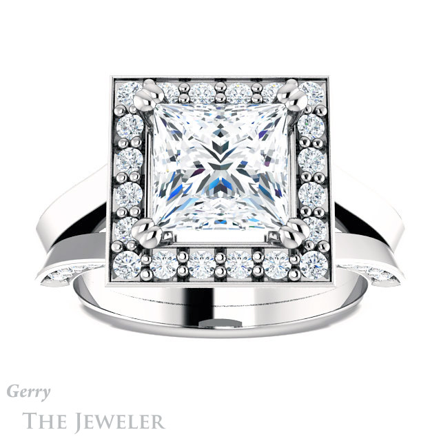 - This design can be set with your choice of certified lab grown diamond or moissanite center gem.Â