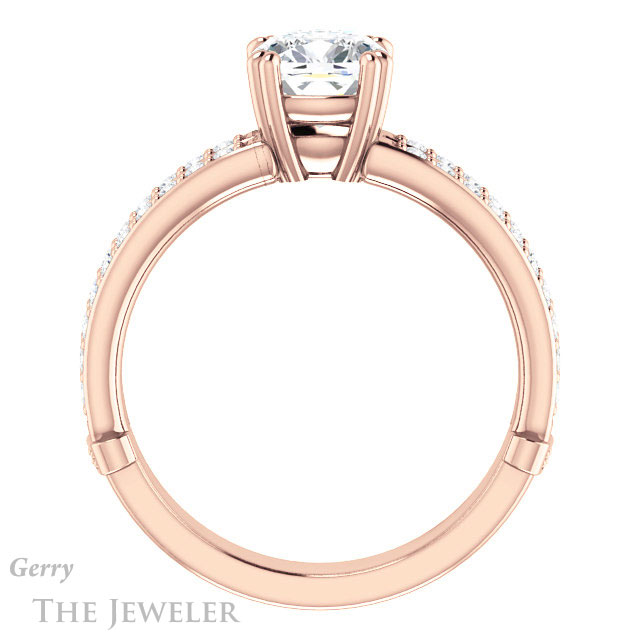 - This design can be set with your choice of certified lab grown diamond or moissanite center gem.Â