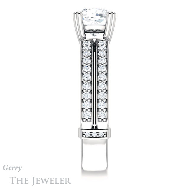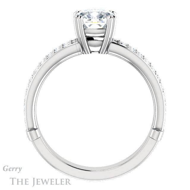 - This design can be set with your choice of certified lab grown diamond or moissanite center gem.Â