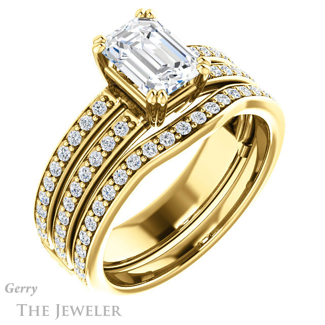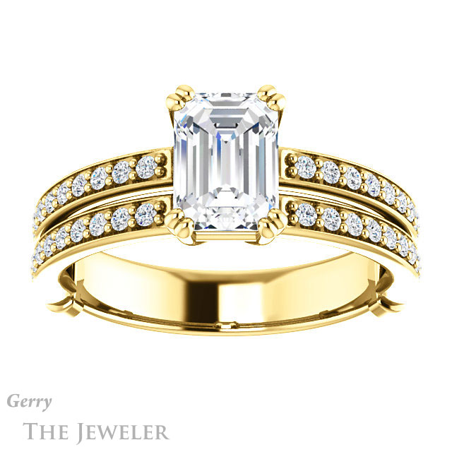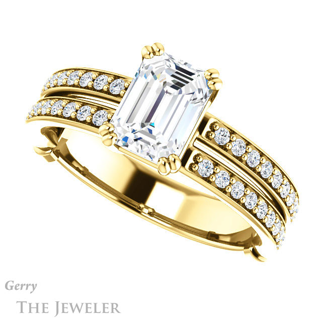 Emerald Cut Forever One Moissanite Engagement Ring #GTJ902-emerald-fb-y