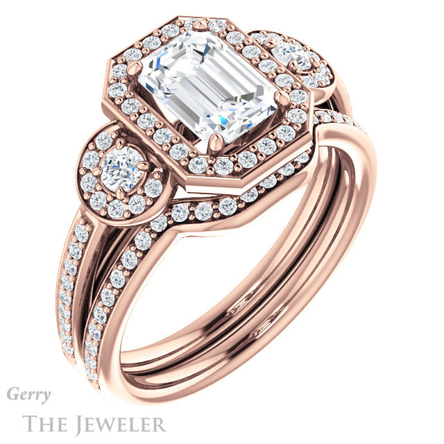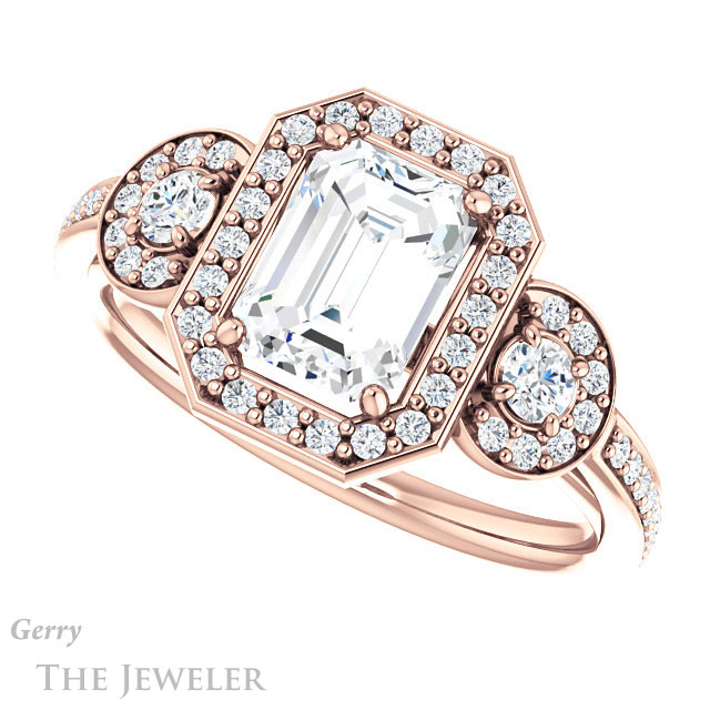 Emerald Cut Forever One Moissanite Engagement Ring #GTJ909-emerald-fb-r