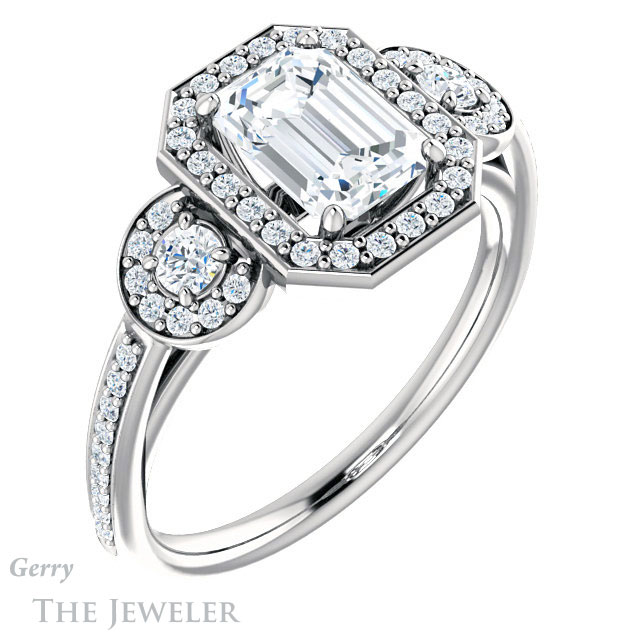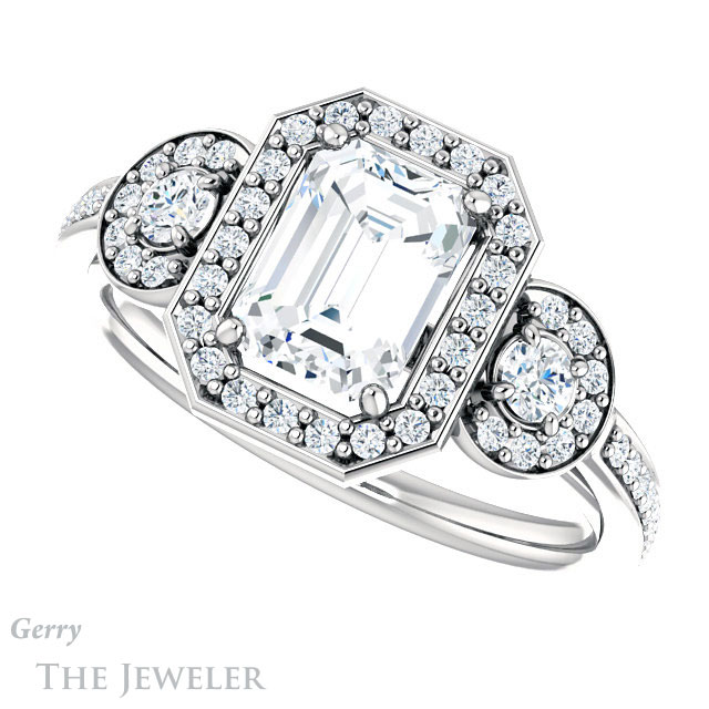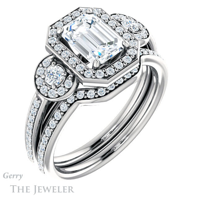 Emerald Cut Forever One Moissanite Engagement Ring #GTJ909-emerald-fb-w