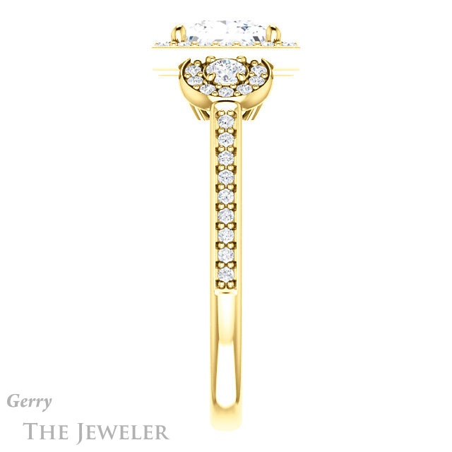 - This design can be set with your choice of certified lab grown diamond or moissanite center gem.Â