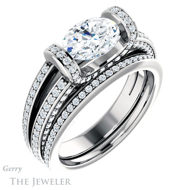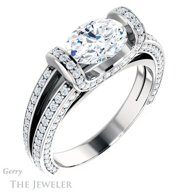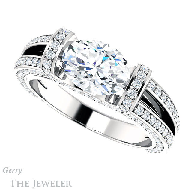 Oval Shaped Forever One Moissanite Engagement Ring #GTJ918-oval-fo-w