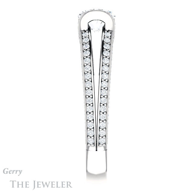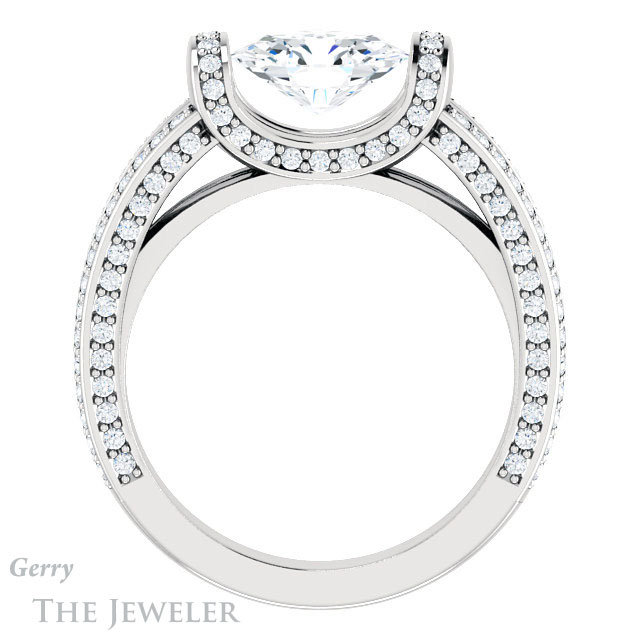 - This design can be set with your choice of certified lab grown diamond or moissanite center gem.Â