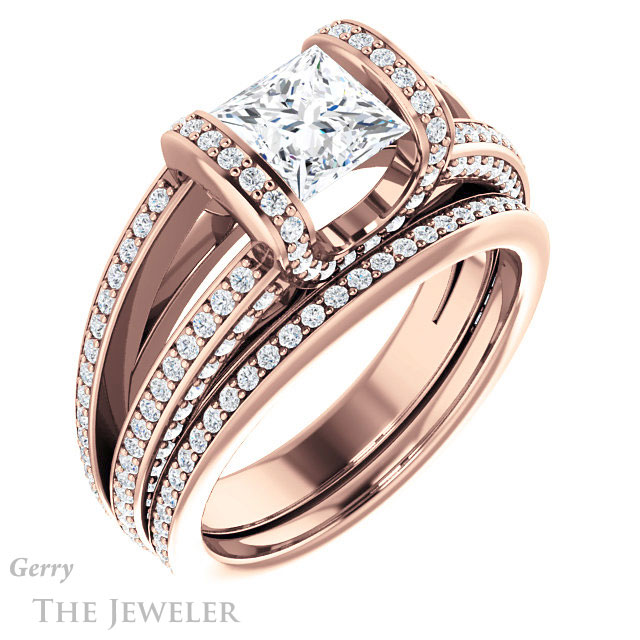 - This design can be set with your choice of certified lab grown diamond or moissanite center gem.Â