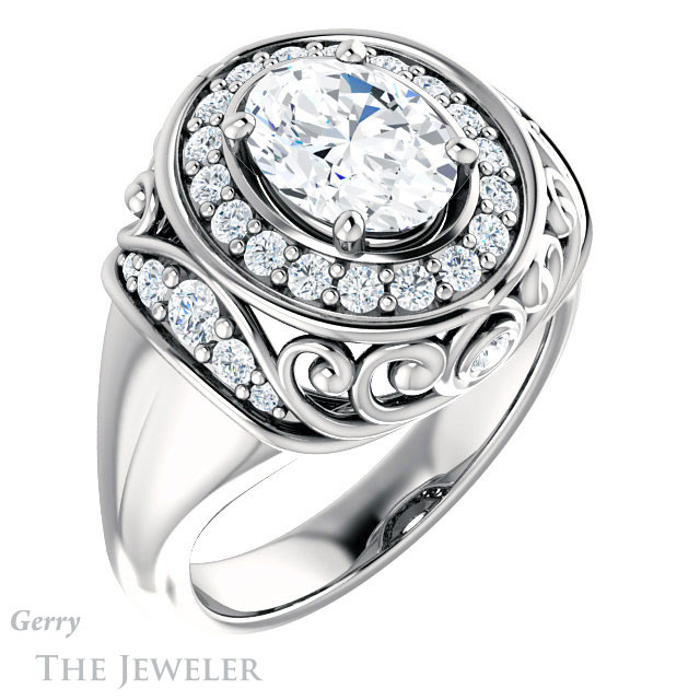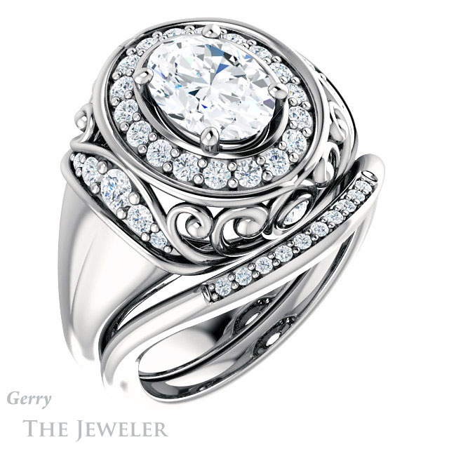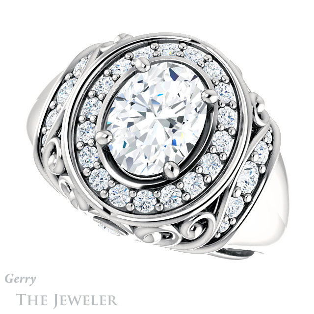 Oval Shaped Forever One Moissanite Engagement Ring #GTJ919-oval-fo-w