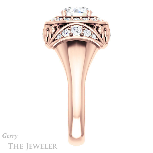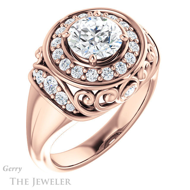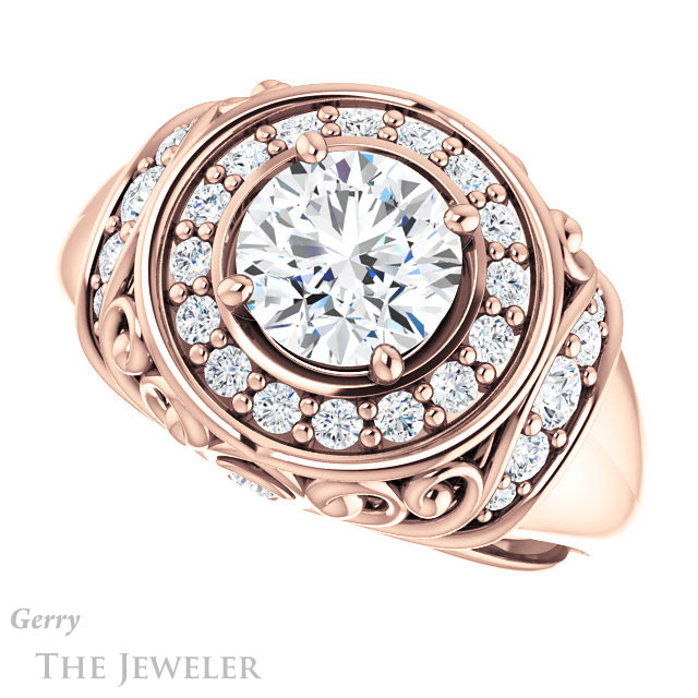 - This design can be set with your choice of certified lab grown diamond or moissanite center gem.Â