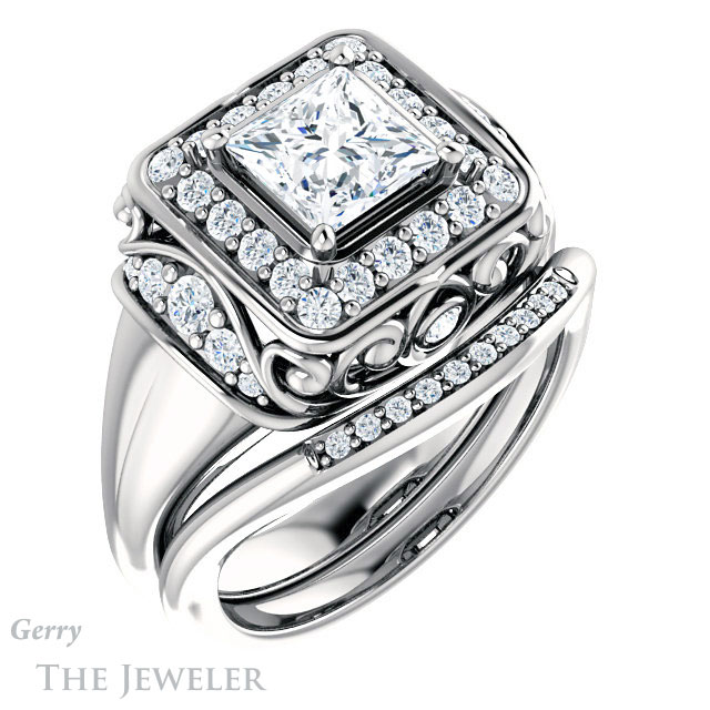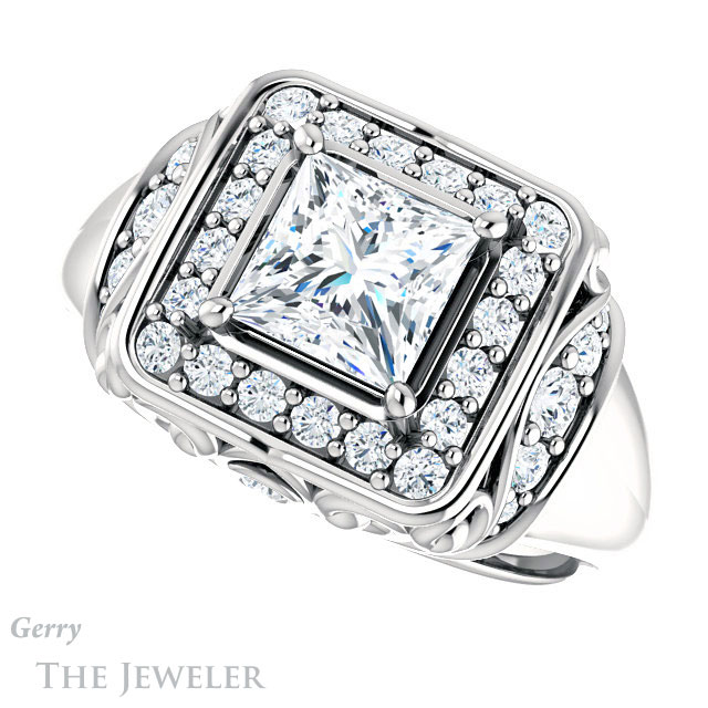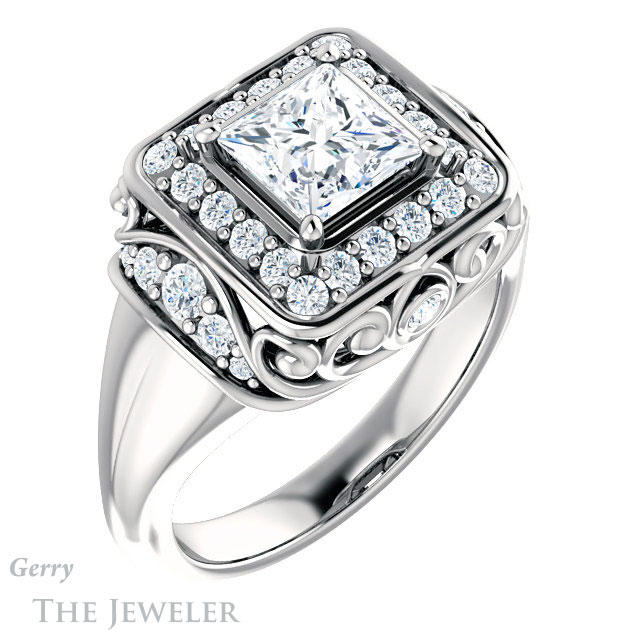 Princess Cut Forever One Moissanite Engagement Ring #GTJ919-square-fo-w