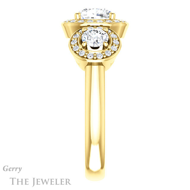 - This design can be set with your choice of certified lab grown diamond or moissanite center gem.Â
