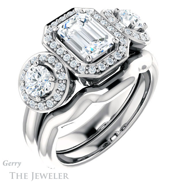 Emerald Cut Forever One Moissanite Engagement Ring #GTJ921-emerald-fb-w