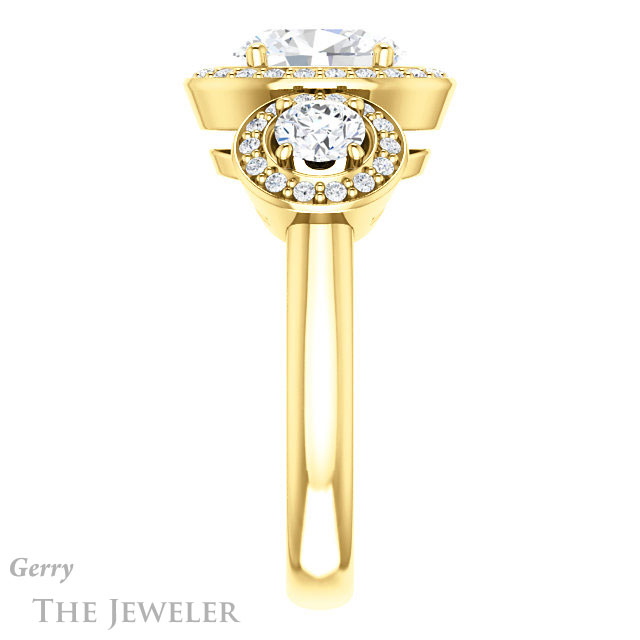 • This design can be set with your choice of certified lab grown diamond or moissanite center gem.