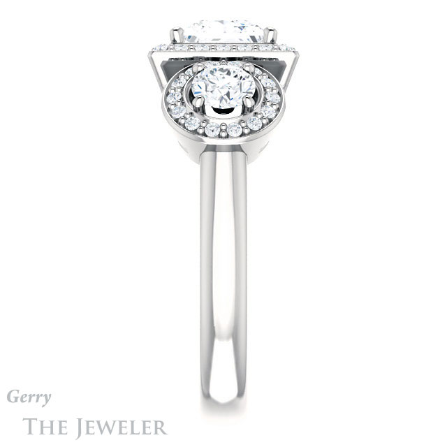 - This design can be set with your choice of certified lab grown diamond or moissanite center gem.Â