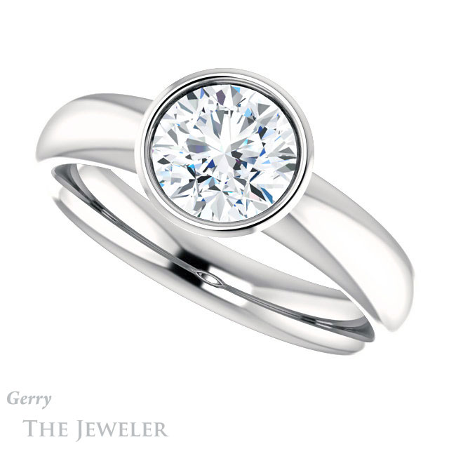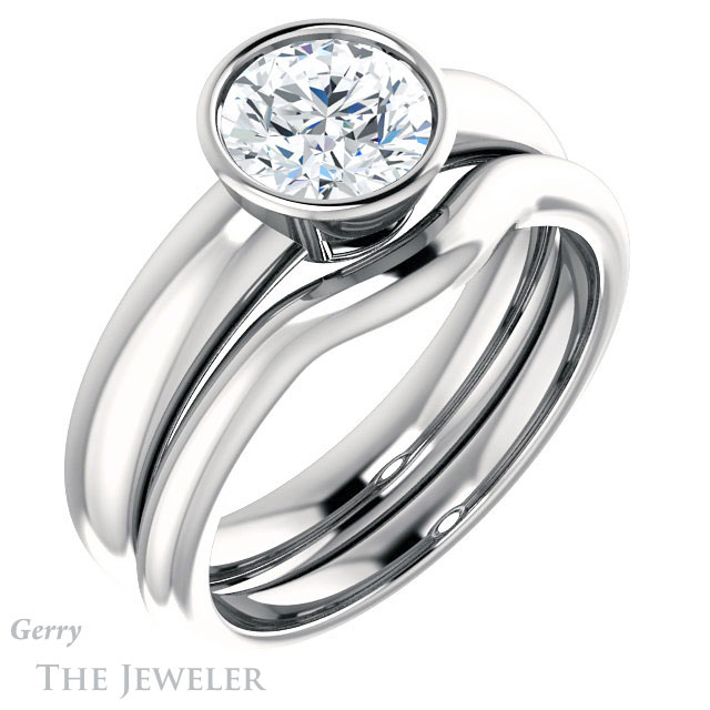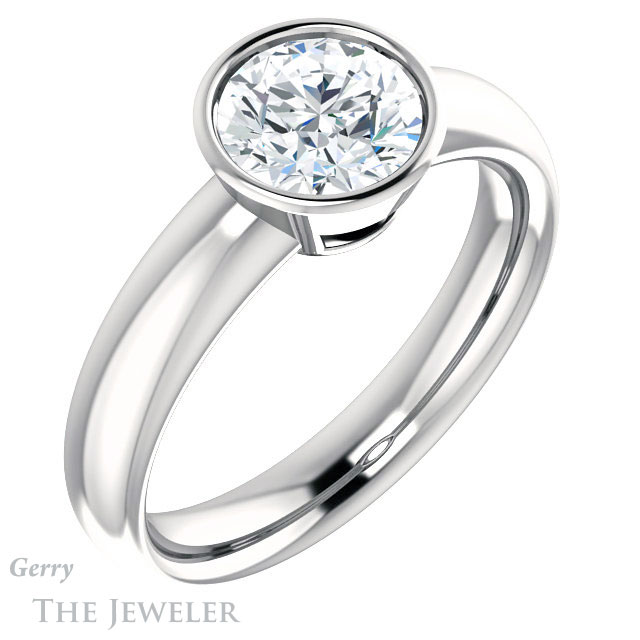 Round Cut Forever One Moissanite Engagement Ring #GTJ922-round-fo-w